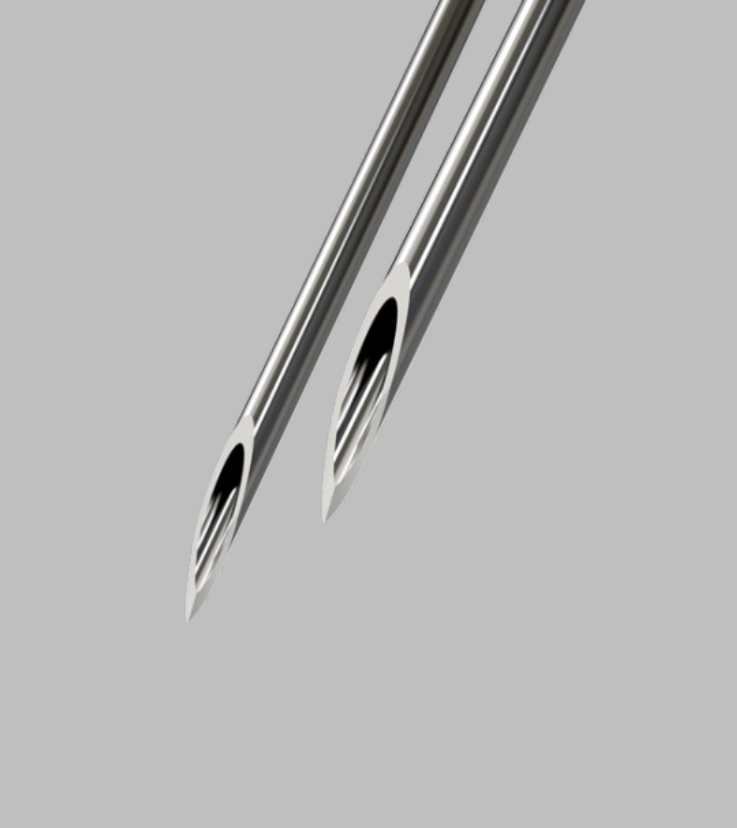 Diese Technik kommt immer mehr zur Anwendung. Sie bietet einen völlig neuen Ansatz. Die atraumatische Kanüle ist an der Spitze abgerundet und somit stumpf. Das hat zur Folge, dass diese Kanüle sich nicht durch das Gewebe schneidet sondern schonend hindurch gleitet und das Gewebe verdrängt. Hierbei werden Arterien und Venen, als auch Nerven zur Seite geschoben und es entstehen deutlich seltener Gewebeschäden oder blaue Flecken. Da diese Kanülen sehr wenig Schaden anrichten, können sie auf lange Wege unter die Haut gebracht werden. Zunächst wird mit einem einzigen Stich durch die Hautoberfläche mit einer Zugangsnadel ein kleines Eintrittsloch gesetzt. Anschließend kann mit der langen und stumpfen Kanüle hierdurch fast die gesamte Gesichtshälfte behandeln werden. Wo mit einer scharfen Nadel viele Einstiche notwendig wären, wird hier mit nur sehr wenigen Einstichen ein großes Behandlungspotential möglich. An gewissen Stellen ist es ratsam aufgrund des erhöhten Risikos von Gefäß- oder Nervenschäden die stumpfe Kanüle der scharfen vorzuziehen.
