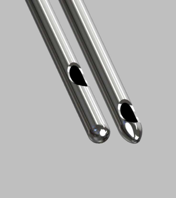 Diese Technik kommt immer mehr zur Anwendung. Sie bietet einen völlig neuen Ansatz. Die atraumatische Kanüle ist an der Spitze abgerundet und somit stumpf. Das hat zur Folge, dass diese Kanüle sich nicht durch das Gewebe schneidet sondern schonend hindurch gleitet und das Gewebe verdrängt. Hierbei werden Arterien und Venen, als auch Nerven zur Seite geschoben und es entstehen deutlich seltener Gewebeschäden oder blaue Flecken. Da diese Kanülen sehr wenig Schaden anrichten, können sie auf lange Wege unter die Haut gebracht werden. Zunächst wird mit einem einzigen Stich durch die Hautoberfläche mit einer Zugangsnadel ein kleines Eintrittsloch gesetzt. Anschließend kann mit der langen und stumpfen Kanüle hierdurch fast die gesamte Gesichtshälfte behandeln werden. Wo mit einer scharfen Nadel viele Einstiche notwendig wären, wird hier mit nur sehr wenigen Einstichen ein großes Behandlungspotential möglich. An gewissen Stellen ist es ratsam aufgrund des erhöhten Risikos von Gefäß- oder Nervenschäden die stumpfe Kanüle der scharfen vorzuziehen.